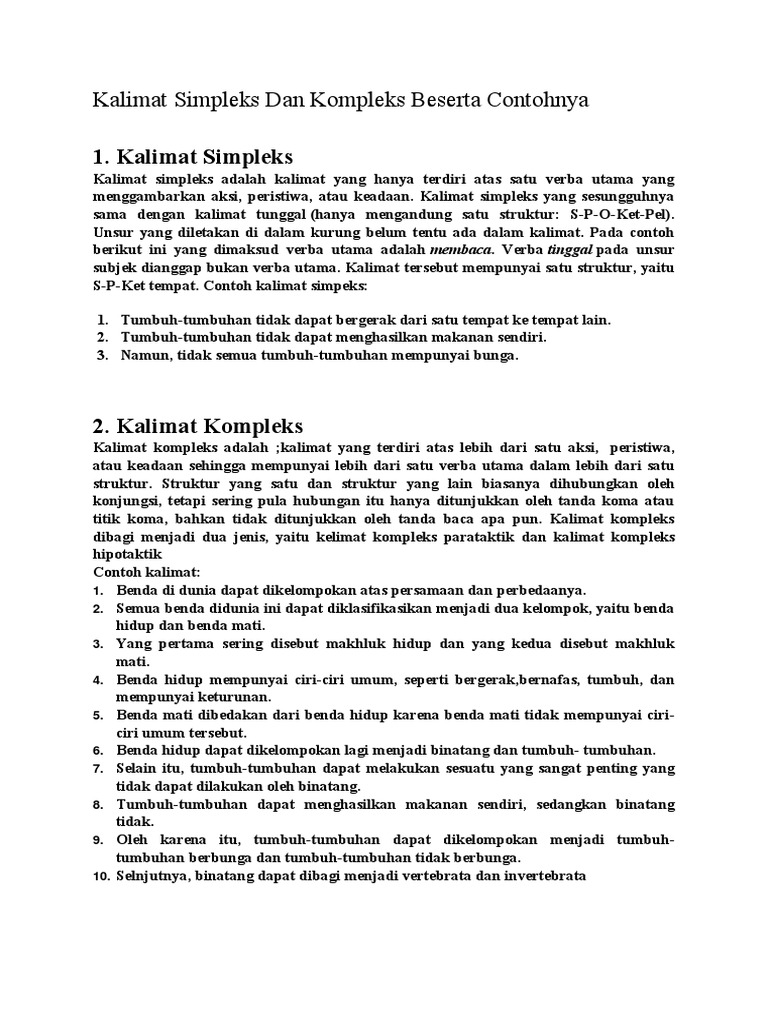 Kalimat Simpleks Dan Kompleks Teks Co Id from teks.co.id Karena hanya terdiri dari satu pesan atau informasi yang disampaikan. Pada contoh di atas menunjukkan bentuk kalimat simpleks. Seperti yang dibahas sebelumya, kalimat simpleks merupakan kalimat tunggal yang terdiri dari satu subjek (s), predikat (p), objek (o) dan keterangan (k).