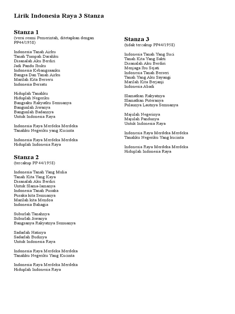 Lirik Lagu Kebangsaan Indonesia Raya from image.slidesharecdn.com Indonesia tanah airku tanah tumpah darahku di sanalah aku berdiri jadi pandu ibuku indonesia kebangsaanku bangsa dan tanah airku marilah kita berseru indonesia bersatu. Supratman ini dipublikasikan pada tanggal 1 januari 2009 (13 tahun yang lalu). More images for indonesia raya lirik »