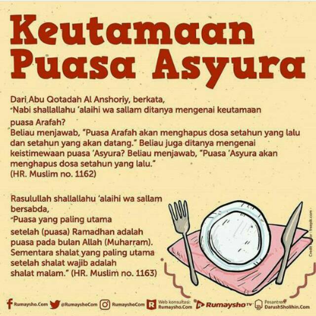 Get Puasa 9 Dan 10 Muharram Rumaysho Pics. Lumrah dalam kebiasaan kita setiap tanggal 9 dan 10 muharram umat islam melaksanakan puasa tasu'a (puasa sunnah pada tanggal 9 muharram) karena puasa asyura dan tasua adalah puasa sunnah, maka niat bisa dilakukan pada malam hari hingga tergelincirnya matahari, yakni pada waktu. Dalam konteks puasa sunah tasu'a (9 muharram) dan asyura (10 muharram), ulama berbeda pendapat perihal ta'yin.