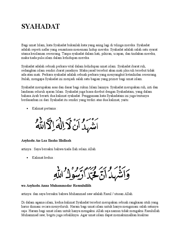 Pengertian seni menurut para ahli, jenis, fungsi dan tujuannya Dengan mengucapkan syahadat dan disaksikan oleh orang lain dari kalangan orang islam maka seseorang telah dianggap beragama islam. Syahadat memiliki makna janji yang artinya yaitu setiap orang atau setiap umat muslim merupakan termasuk orang yang berserah diri hanya kepada allah swt dan berjanji untuk selalu taat dalam segala keadaan dan segala perintah dari allah swt serta semua pesan yang. Berikut ini terdapat beberapa kandungan dari kalimat syahadat.